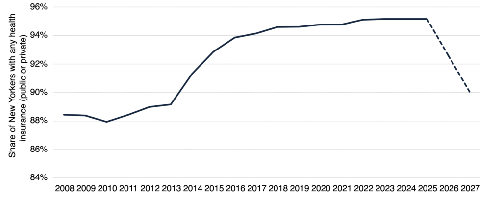 Figure 1: Impact of Medicaid work requirements and Essential Plan cuts on New York Uninsurance Rate